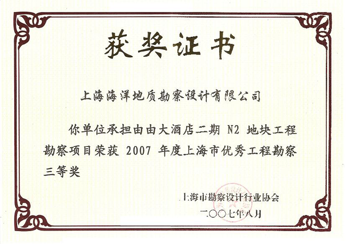 《上海市軌道交通10號線(M1)一期巖土工程勘察、咨詢及數字平臺開發(fā)應用項目》榮獲2011年度上海市優(yōu)秀工程勘察一等獎