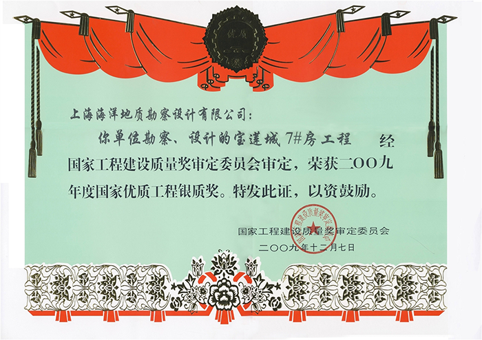 《上海市軌道交通10號(hào)線(xiàn)(M1)一期巖土工程勘察、咨詢(xún)及數(shù)字平臺(tái)開(kāi)發(fā)應(yīng)用項(xiàng)目》榮獲2011年度上海市優(yōu)秀工程勘察一等獎(jiǎng)